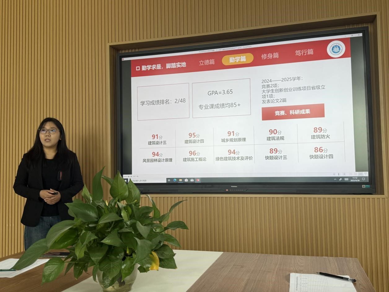 为充分发挥奖学金评选工作的育人作用,切实选树优秀学生典型,9月28日上午,建筑工程学院在土木楼201会议室举行2024-2025学年国家奖学金及省政府奖学金答辩评审会。学院奖学金评审小组参会,对参评学生进行综合考评,评审会由辅导员宋昕菲主持。