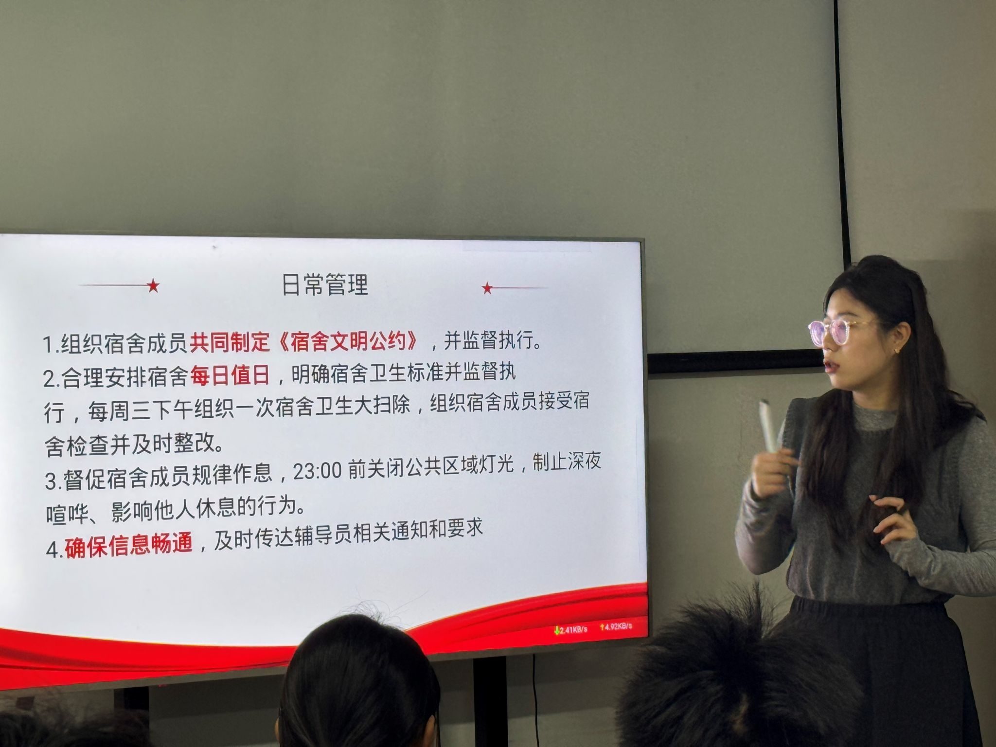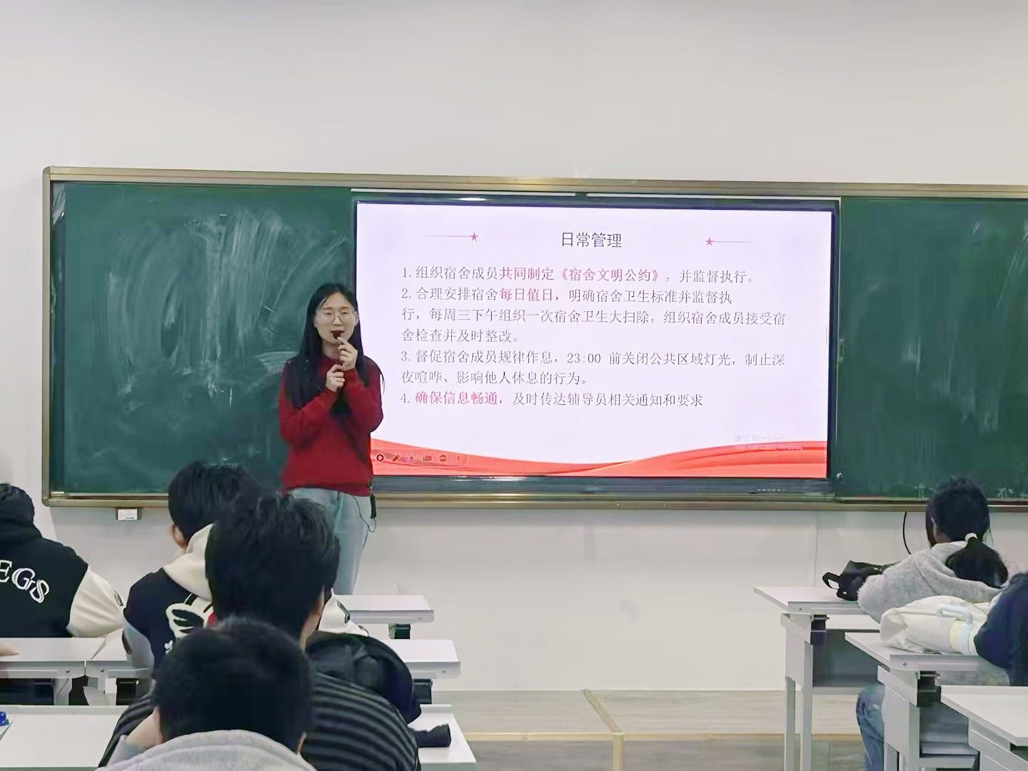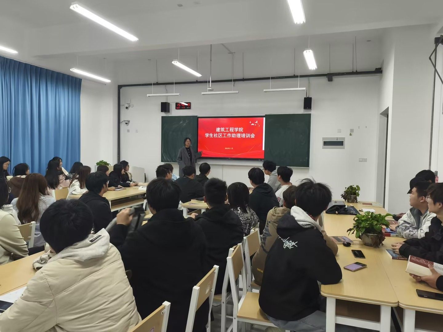 为进一步加强学生宿舍管理,营造安全、文明、和谐的宿舍环境,充分发挥学生社区工作助理的模范带头作用,近日,建筑工程学院组织召开学生社区工作助理专题培训会。会议由各年级辅导员主持,全体学生社区工作助理参会。
