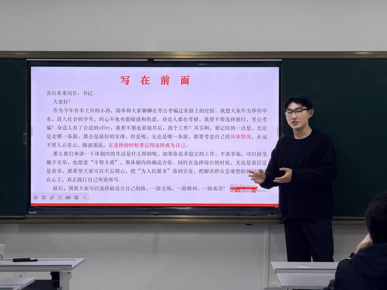 本次指导会邀请优秀毕业生迟水清、孙培烨分别分享考研与考公实战经验。在考研模块,迟水清围绕河北工程大学建筑学专业报考优势,结合本科与专升本学生适配性展开解析,分享分阶段备考计划及复试面试技巧;考公分享环节,孙培烨梳理烟台市事业编建筑学相关岗位招考条件、竞争态势,传授结构化面试应对思路及备考避坑经验。现场互动热烈,学生带着疑问与主讲人深入交流,收获颇丰。