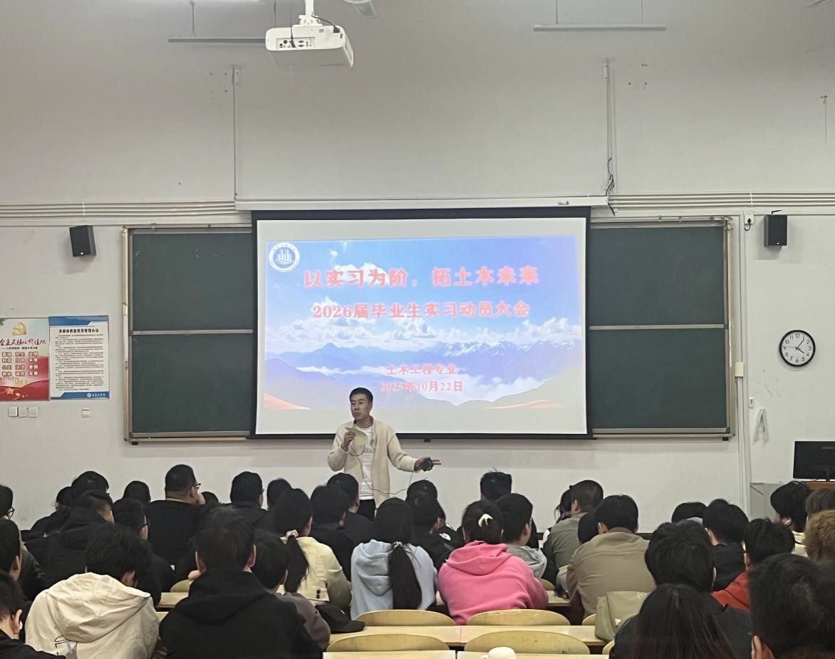 为全面响应并落实本科教育教学审核评估工作要求,进一步凸显实践教学在人才培养体系中的核心支撑作用,10月22日下午,建筑工程学院统筹组织土木工程、工程管理、建筑学专业,联合召开 2026 届毕业实习动员大会。各专业负责人、教研室主任及全体 2026 届毕业生共同参会,以专业协同联动的态势,为规范实习全流程、夯实本科教育教学审核评估基础正式按下 “启动键”。